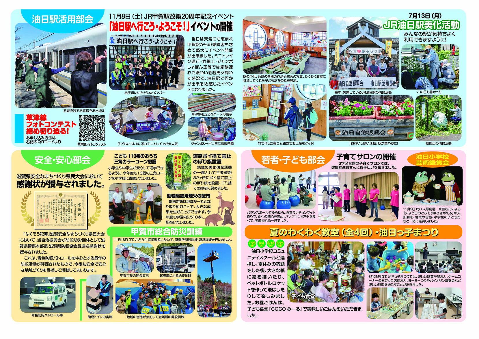 油日小学校芸術鑑賞会(11/5)、油日駅に行こうイベント(11/8)など、秋の情報満載の紙面をどうぞご覧ください。