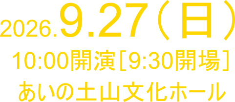 | 〈開催日時〉 | 2026年9月27日(日) 10:00開演(9:30開場) |
