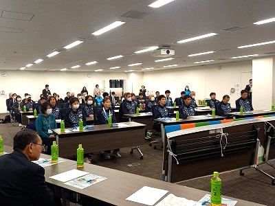 滋賀県選手団ユニフォームに身をまとい、岩永市長、立岡教育長他6名の来賓の方々をお招きして、開催いたしました。