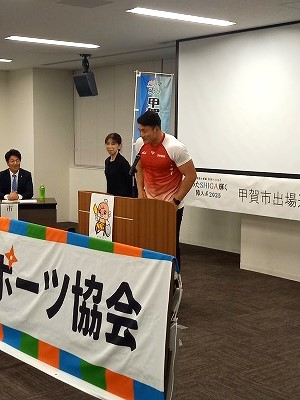 甲賀市在住の選手3名を壮行しました。