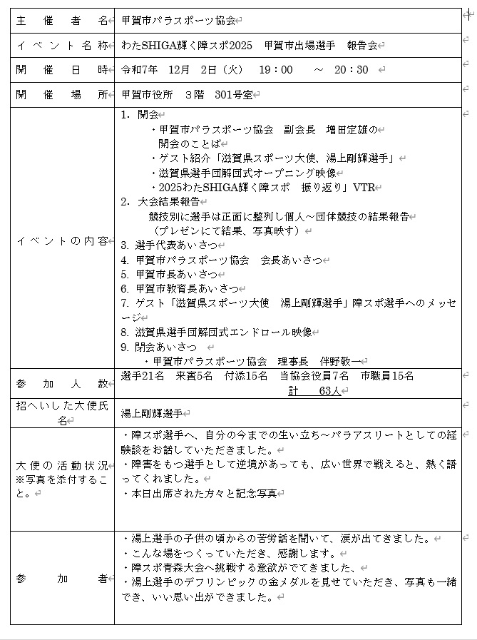 甲賀市パラスポーツ協会 活動報告report