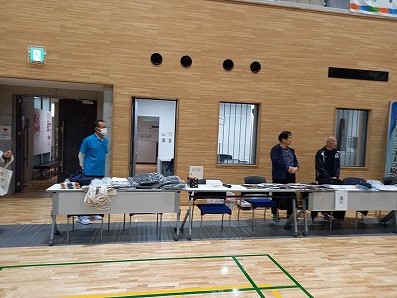急遽代理での授与式を行いました。 また、協賛いただいた(一社)絆こどもプロジェクト様から、豚汁、大学いもの無料提供を受け、
